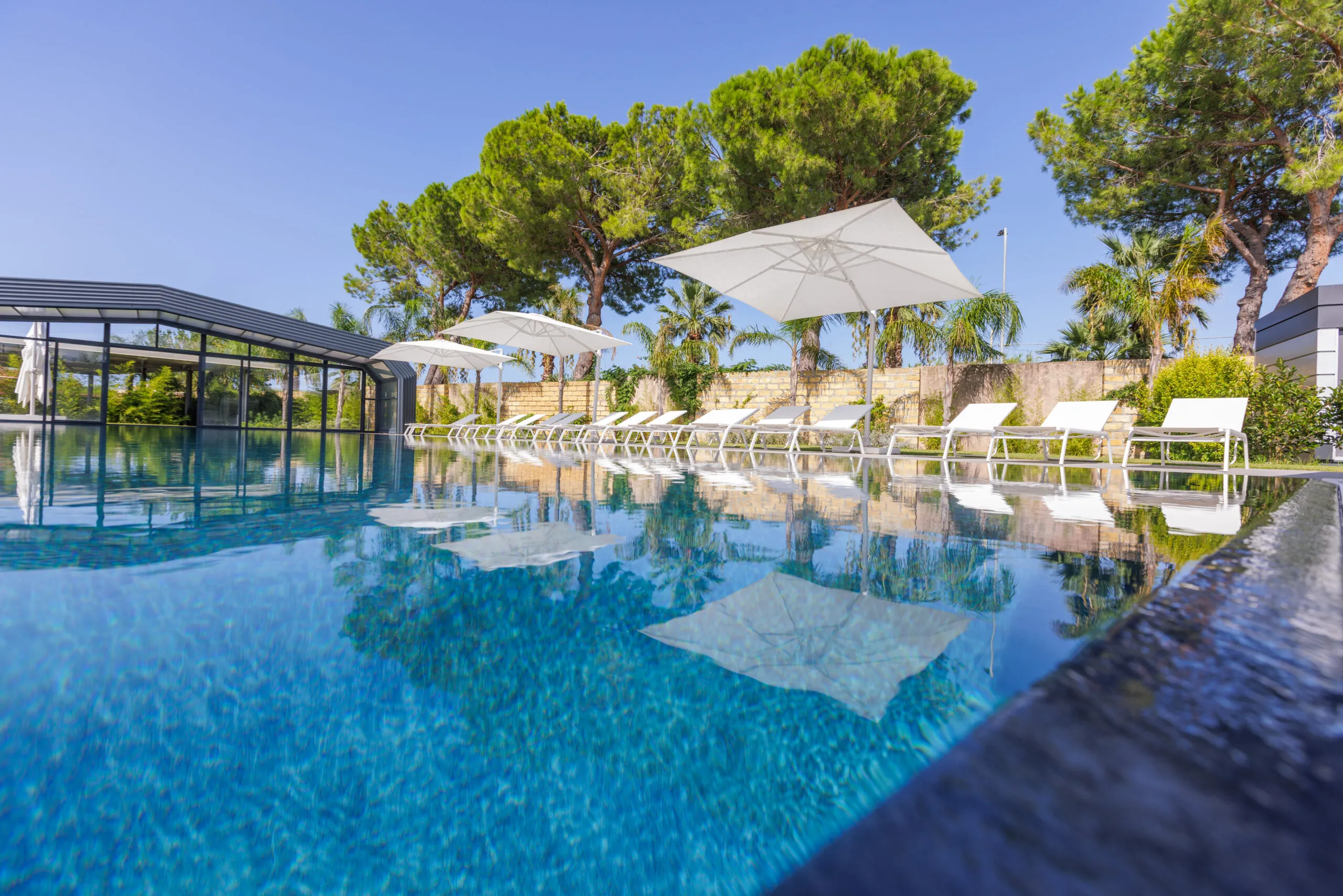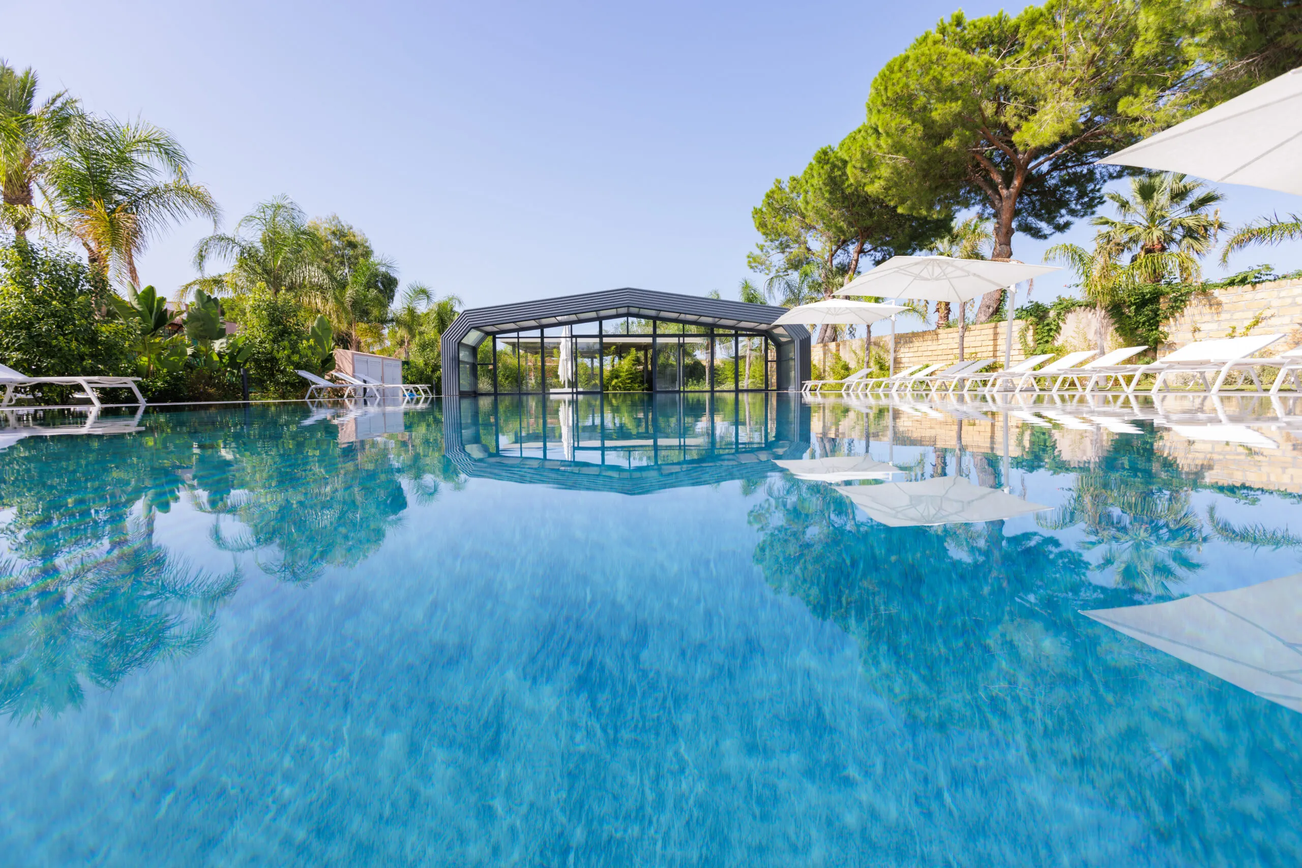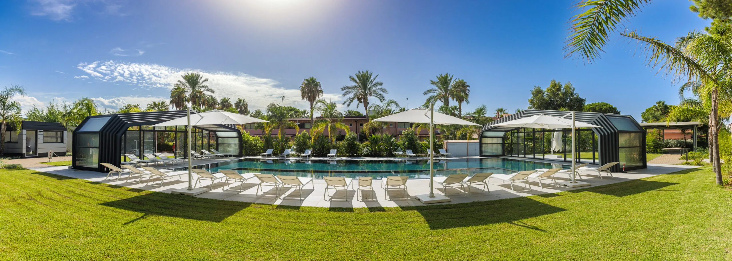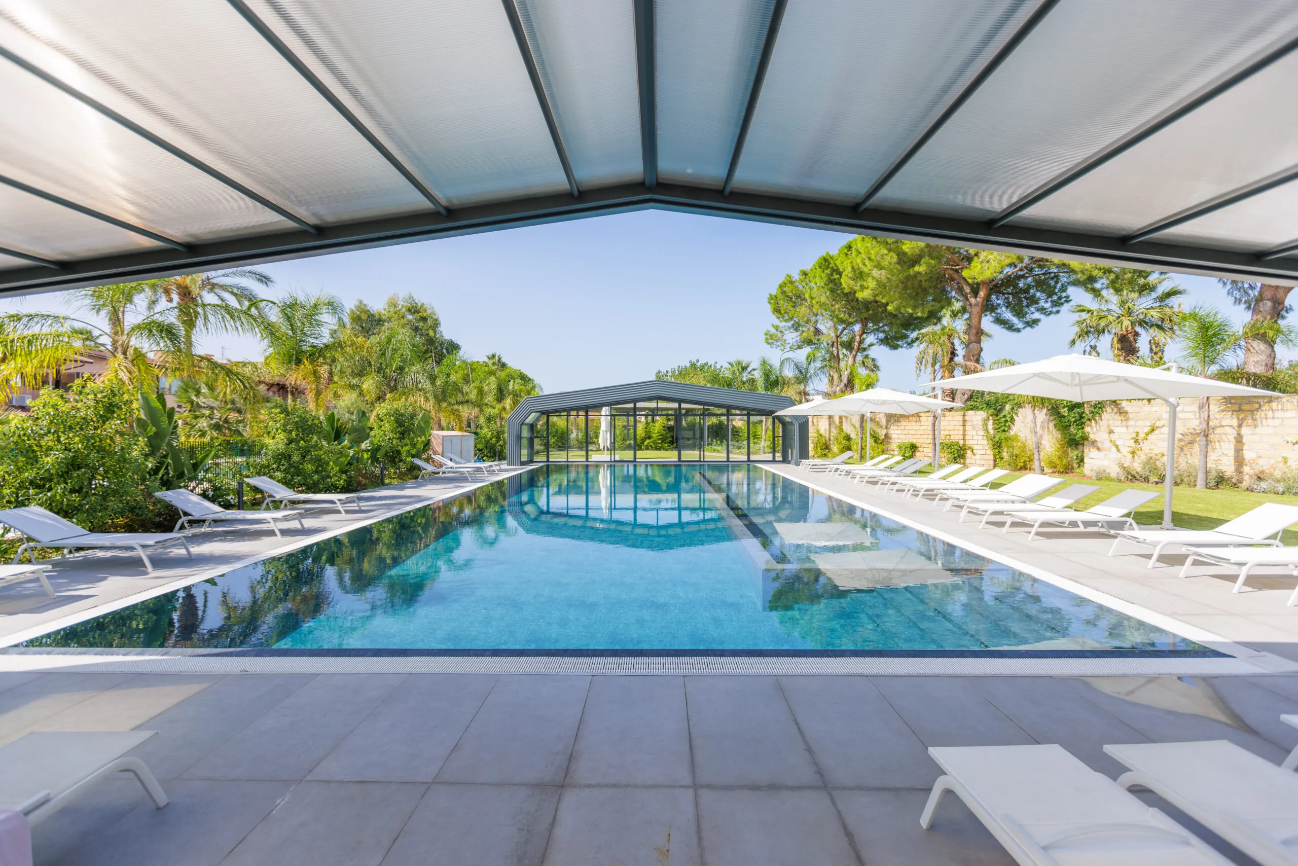 Con una variada oferta de apartamentos de distintos tipos y tamaños, adaptados tanto para estancias breves como prolongadas, Il Corallo Residence es el escenario perfecto para quienes buscan relajación y serenidad. La integración de la cubierta de piscina ITALICA añade un toque de distinción y seguridad, permitiendo a los huéspedes disfrutar de un área de baño protegida y estéticamente agradable durante todo el año. Los apartamentos, rodeados de verdor, cuentan con generosos espacios exteriores, incluyendo porches y terrazas amueblados con esmero, asegurando el máximo confort y una estancia deleitable.