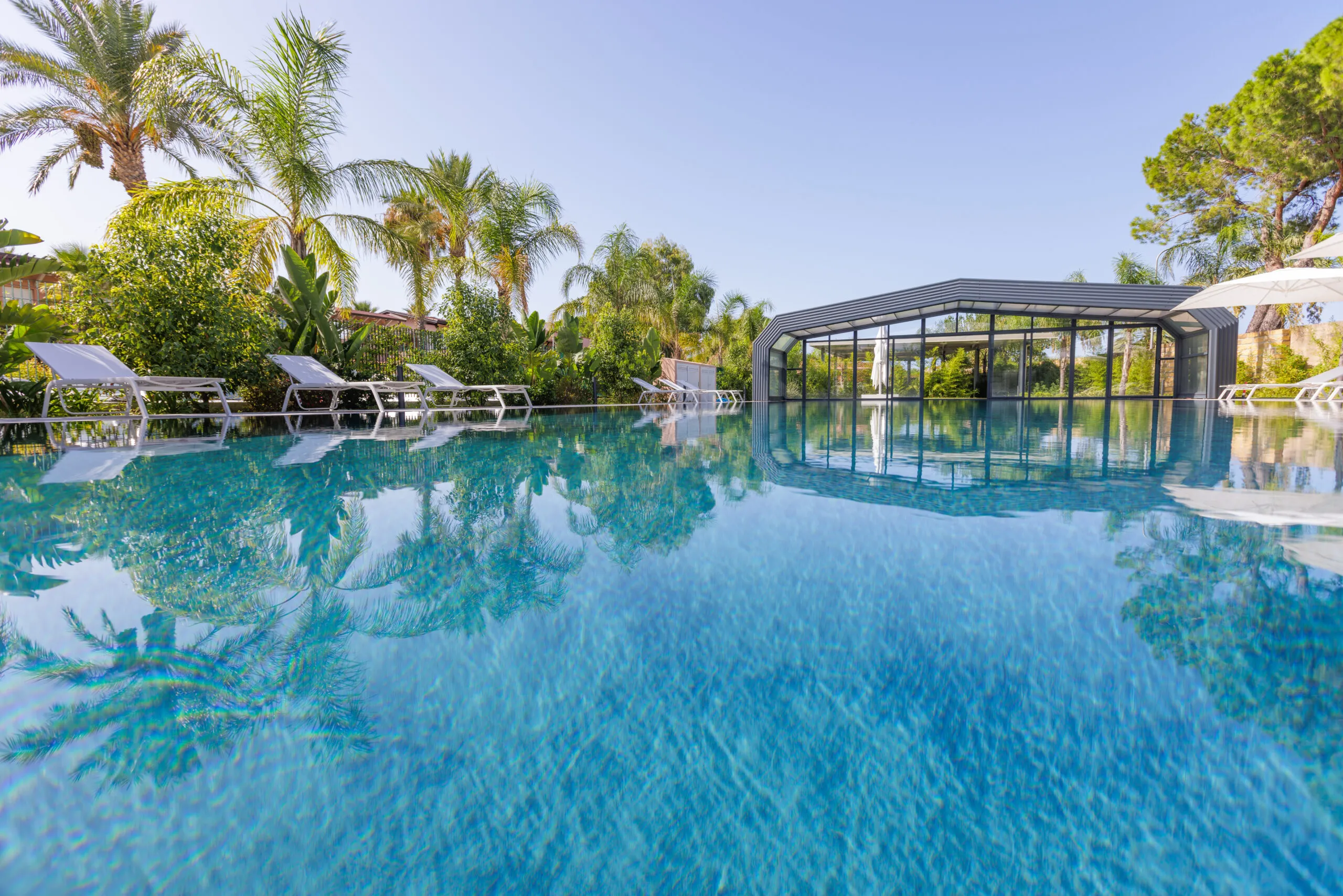 La cubierta de piscina modelo ITALICA, fabricada con vidrio laminado de seguridad, ha sido instalada en Il Corallo Residence. Este elegante alojamiento forma parte del complejo turístico Portorosa, magníficamente ubicado a lo largo de la costa norte de Sicilia, en la Bahía de Tindari, frente al impresionante archipiélago de las Islas Eolias. Rodeado de jardines floridos y exuberantes, Il Corallo Residence goza de una posición privilegiada dentro del complejo, ofreciendo a sus huéspedes una experiencia única de cercanía con el mar y la naturaleza.