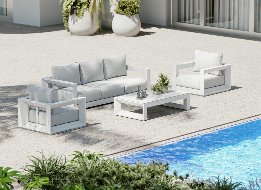 La colección Kronos combina diseño contemporáneo y líneas minimalistas con materiales de alta calidad para crear un ambiente acogedor y moderno en exteriores. Compuesta por sofá de tres plazas, sillones y mesa de centro, cada pieza ha sido meticulosamente diseñada para garantizar máximo confort, durabilidad y fácil mantenimiento.