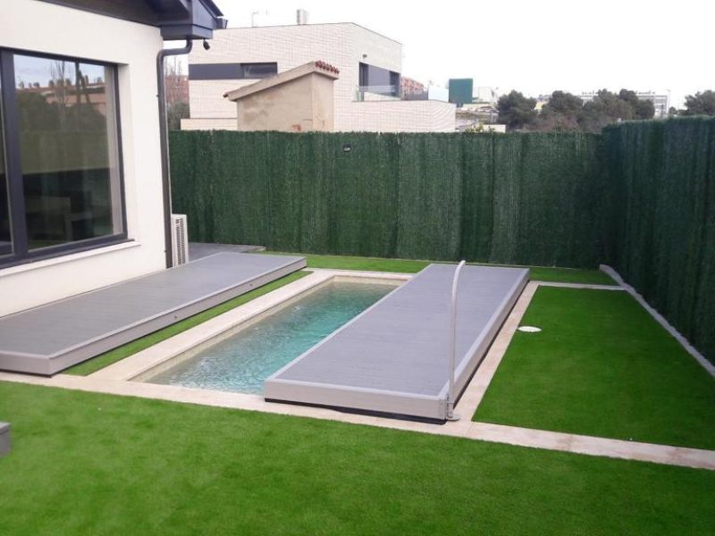 El mejor material para una cubierta de piscina es el vidrio, porque no se deforma, no envejece, no se raya y no se mancha. Por ello, este material es utilizado en nuestra línea premium.