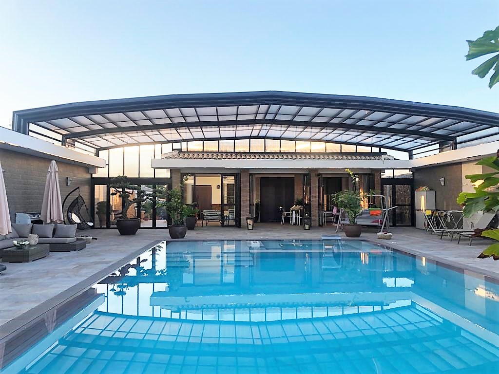 Techo móvil con sistema de apertura motorizada, fabricado utilizando los perfiles COVERTTO de la serie AV200, representa un proyecto totalmente personalizado, diseñado y ejecutado bajo la experta dirección de nuestro Director Técnico, Andrea Cossu. Este techo no solo destaca por su funcionalidad avanzada y facilidad de uso, sino también por su adaptabilidad a las especificaciones únicas de cada espacio, ofreciendo una solución elegante y eficiente para la optimización de ambientes exteriores e interiores.